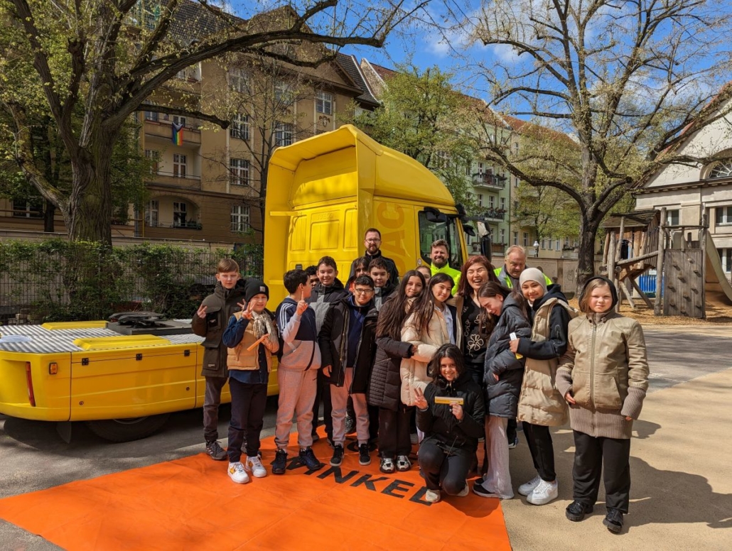 Die 5. und 6. Klassen der Rixdorfer Schule haben bei der Aktion „Toter Winkel“ auf unserem Schulhof teilgenommen.